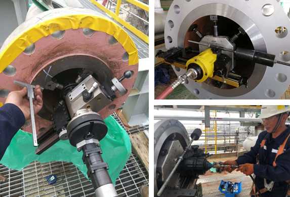 In the flange repair project of an offshore oil company, our company is responsible for providing equipment and technicians to repair the damaged sealing surfaces of flanges and valves. Under the complicated working environment and limited working space, the technicians overcame difficulties and completed the repair work of thousands of flanges and valves within the limited construction time, which ensured the smooth progress of Party A's work and won unanimous praise from customers.